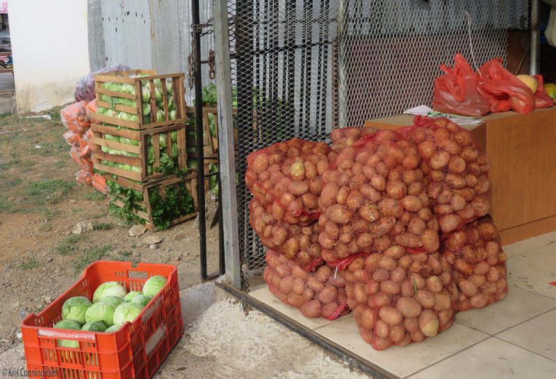Fresh potatoes, cabbage, carrots, celery, lettuce, and crates of many other things were unloaded from the trucks.