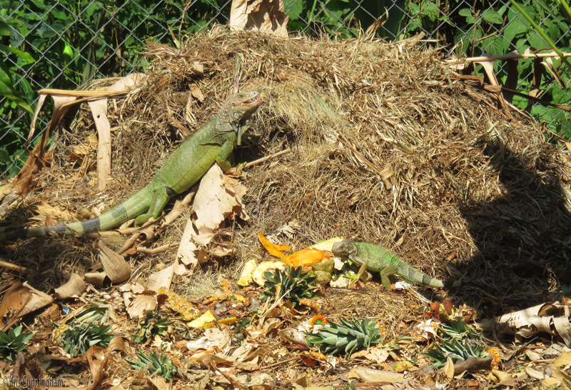 We have a compost pile and sometimes we have iguanas, butterflies, and birds. One day Joel spotted five iguanas!