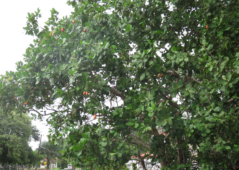Right in front of that mango tree is a cashew tree. You can see some of the red fruits. I also like these and take them home when I find them.