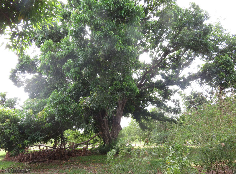This is a huge and very beautiful tree! It lost a limb during the dry and windy season, but there is still plenty of it left to make mangoes.