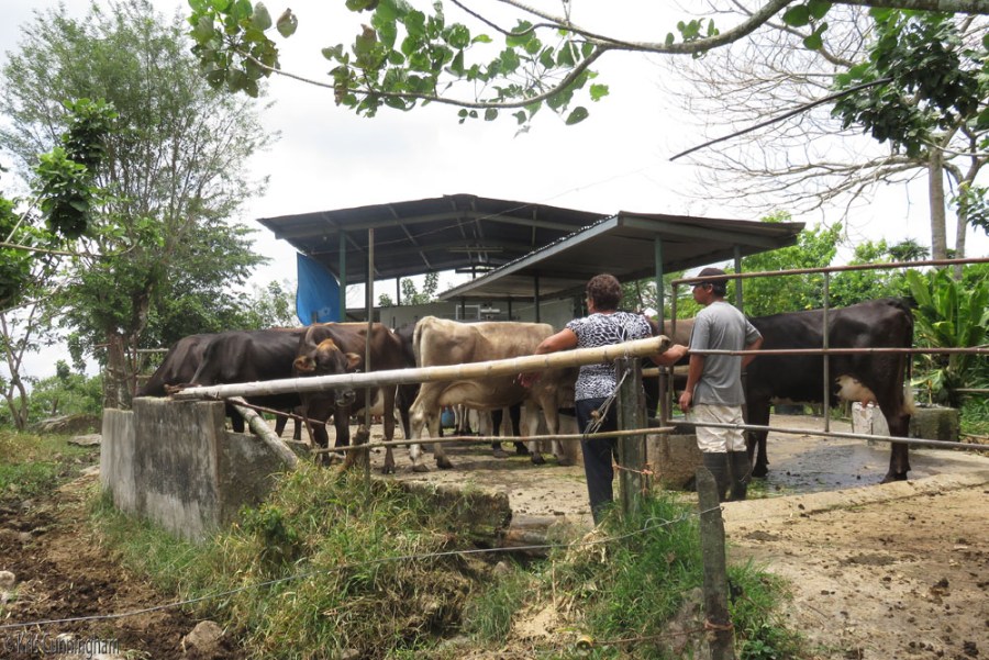 La jefe (the boss) confers with the caretaker about the cows.