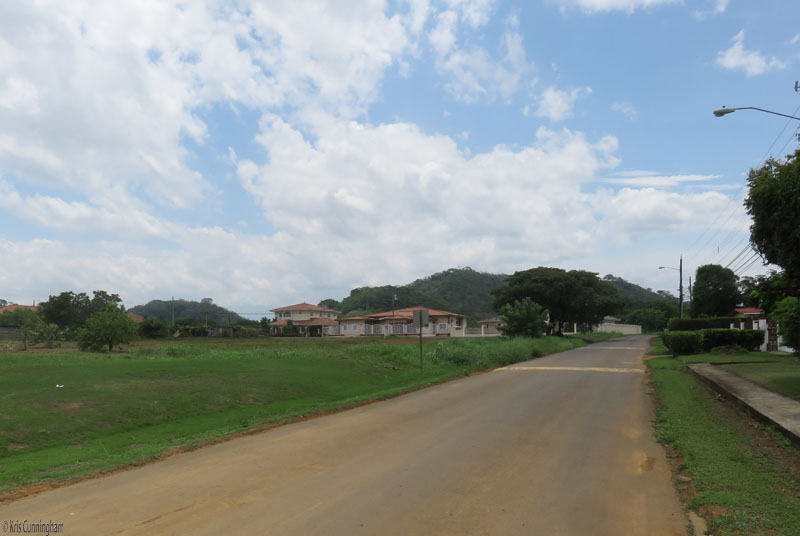 There are many large expensive homes in this area like the ones ahead. The field on the left is one of the good places to see Volcan Baru in the distance (when it’s not hiding in the clouds). .
