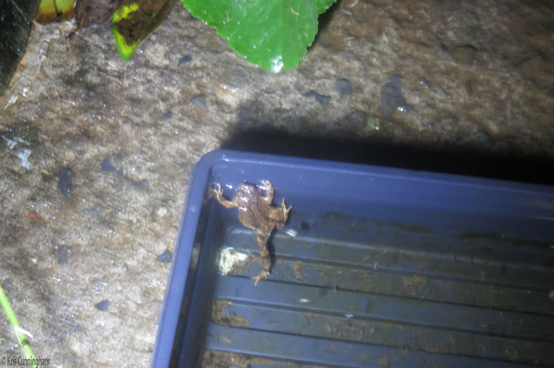 Photos of wiggly creatures by flashlight don’t come out very well, but at least you can see the little frog.