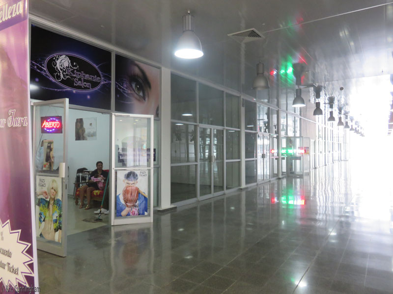 Down past the food court there is very little going on, but this beauty shop has opened and there is another store further down advertising copies on the lighted sign.