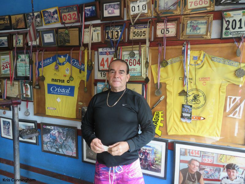 Condor puts on his most serious face as he poses in front of his wall of photos with famous cyclists and other racing awards. He says they always come to the races in Chiriqui every year. He has my contact info so with any luck, he will get in touch and maybe we can host one or two of the team!
