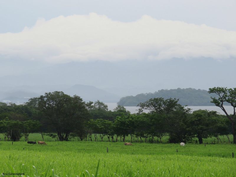 Cows grazing in a green field with the water in the distance make a beautiful scene