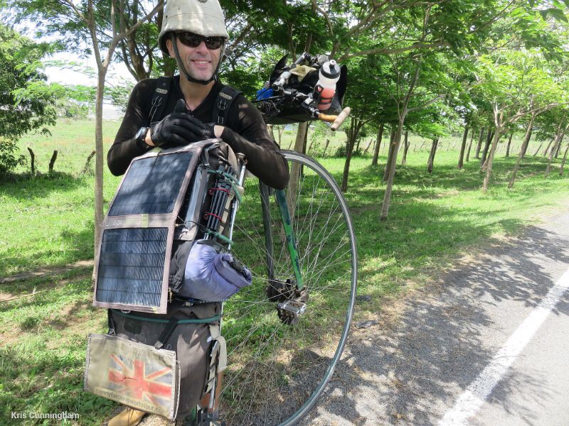 check out this bike! He said he built it himself. There is a step on the back to help him get up on it.