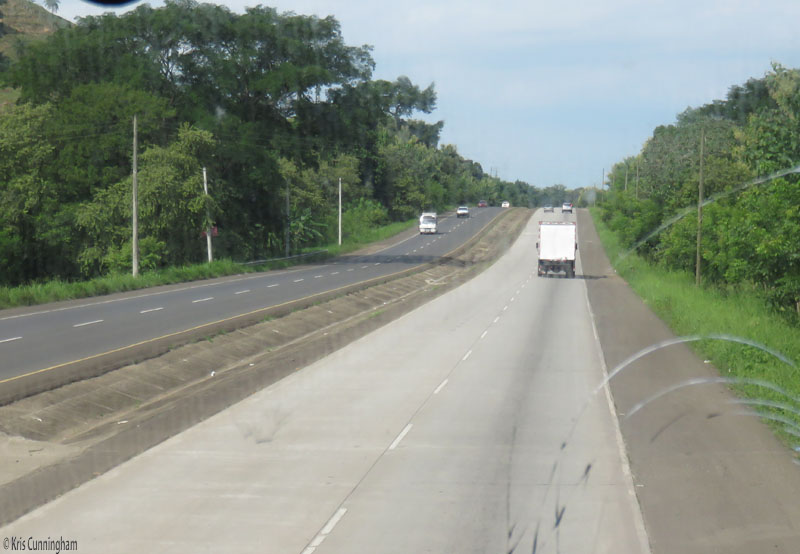 This is leaving Panama City. Between the city and Santiago you can expect four lane road all the way. The shoulders are in various states of smoothness but at least with four lanes there is a way for traffic to get around cyclists.