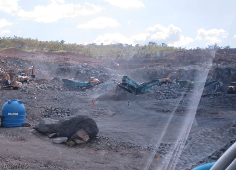 These strange looking machines were chewing up rocks and spitting out gravel.