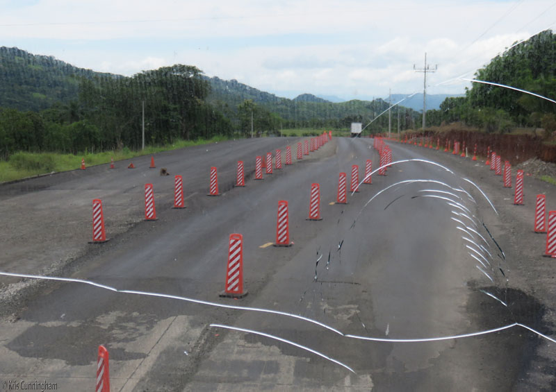 Many areas have no shoulders or gravel shoulders, and there is a lot of navigating through lanes marked by movable markers.