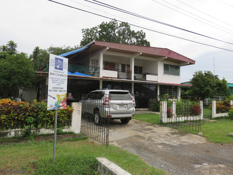 The school has music lessons as well as art classes. There is a fairly large room to the left for classes and performances, and other rooms to the right for lessons. The art area is in the back, and the professor lives upstairs.
