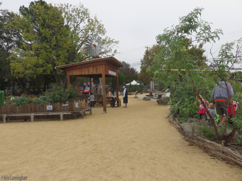 There is a vegetable garden on the left and place where kids can sort vegetables.