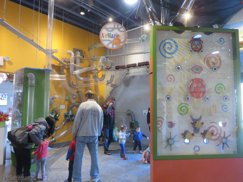 One of my favorite activities was right inside the entrance. You take one of the soft yard balls and put it in a tube entrance. It gets shot up the tube by air and pops out above to land on the floor at your feet. There are various valves where you can change what tube it goes to.