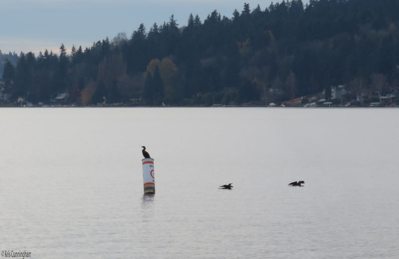 The birds looked like they were standing on something just under the water so they could unfold and dry their wings.