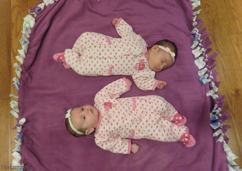 Two babies, one awake and one asleep