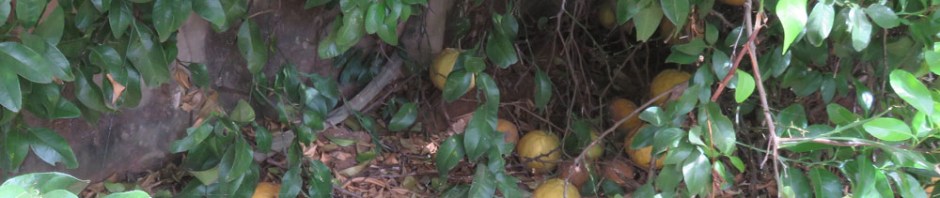 The tree is on a little dirt road just outside our neighborhood, inside someone’s back yard. Half of it is hanging over the wall on the outside though and no one seems to be using any of the fruit. I’m concerned about the vine covering the tree too. I’m not sure if it would be right for me to remove it, to be tending someone else’s tree but it can’t be good for the tree. Maybe I’ll pull off a little every time I go by, or maybe now that it is the rainless dry season it will die off by itself.