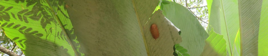This critter is one of the most interesting I have come across in a while. I saw this very furry caterpillar munching on my bijao leaves. (those big leaf clumps of plants that are used for the outer wrappings of tamales). I think I have identified it – the puss caterpillar (because it’s furry like a cat), or the tree asp, or the asp caterpillar, or my favorite, the Trump caterpillar 😀 In its adult form it is the very pretty Southern Flannel Moth. But, this caterpillar is a very bad guy. There are stingers hiding in that fur which will cause intense pain that lasts for hours. The pain may radiate up the limb and cause nausea, swelling, headache, and a number of other effects that land some people in the hospital. If you want to know more, google puss caterpillar or here is a Wikipedia article on Megalopyge Opercularis, it’s scientific name.