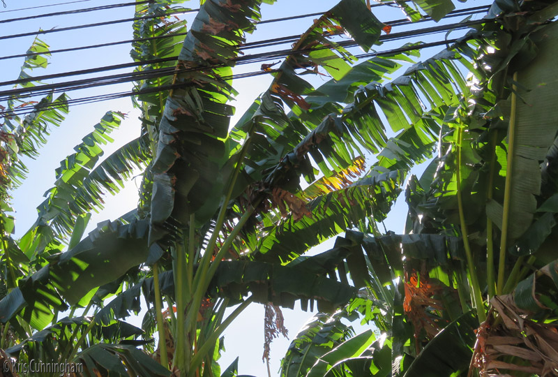 Yes, it is windy. The banana leaves shred a lot in the wind but still seem to function for the plant.