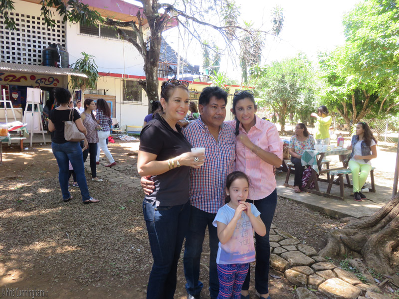 The artist and professor poses with a couple parents and a student
