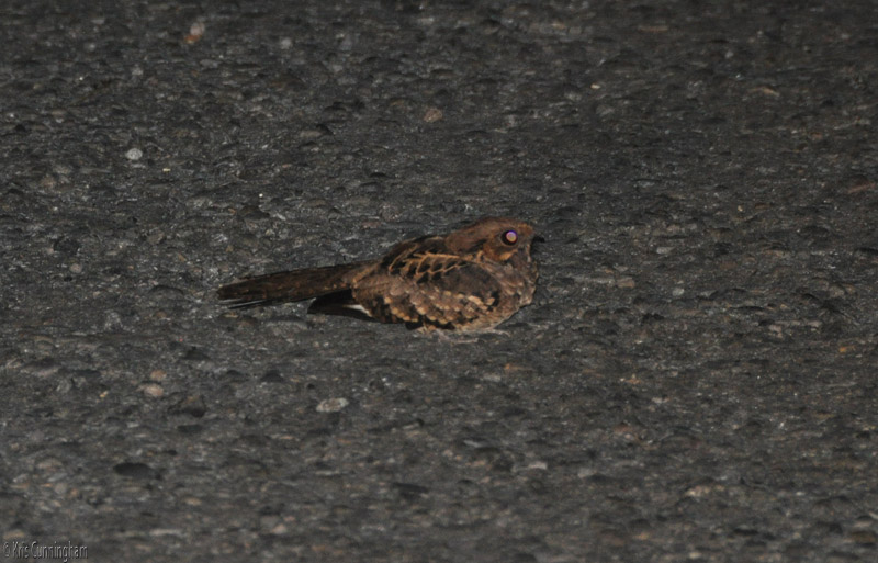 These nightjars like to sit under the street lamps and jump up for the bugs that are attracted by the light. I like hearing their calls in the night