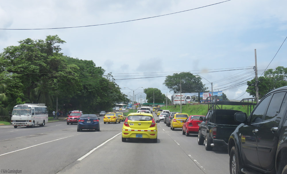 Sitting in traffic for a while. All the yellow vehicles are taxis. Yes, we have a whole lot of taxis here!