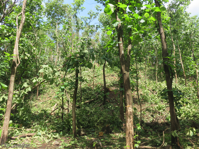 Looking back up the hill we could see where they had cut a lot of the trees. The pine forest is up above here.