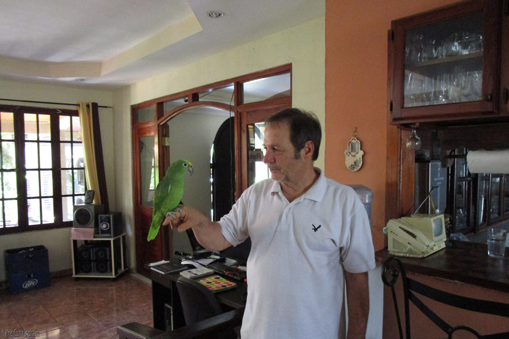 Last but certainly not least, Moty with one of his parrots
