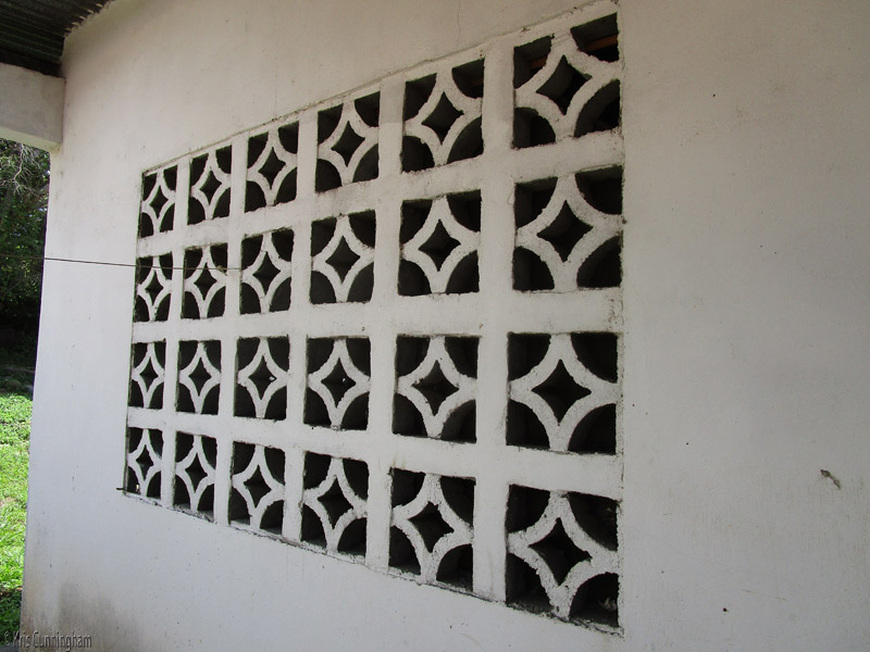 This is a back bedroom. The windows are cinder block but do have screens inside.