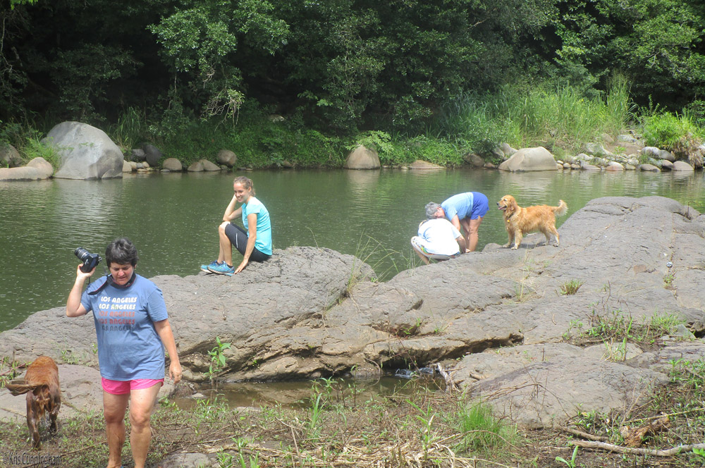 Susan takes photos, Steffi relaxes on a rock, and Joel and Penny inspect the white seams