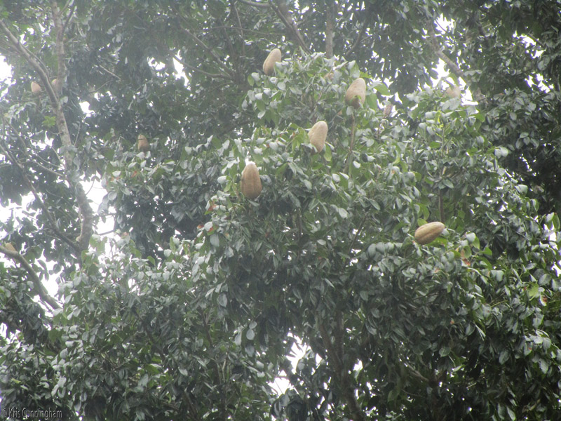 I looked up and saw these strange fruit things above. I don’t know what kind of tree this is or what they are.