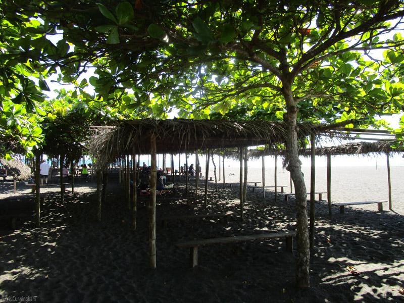 At the public beach area they have constructed many shaded areas for people to sit and relax
