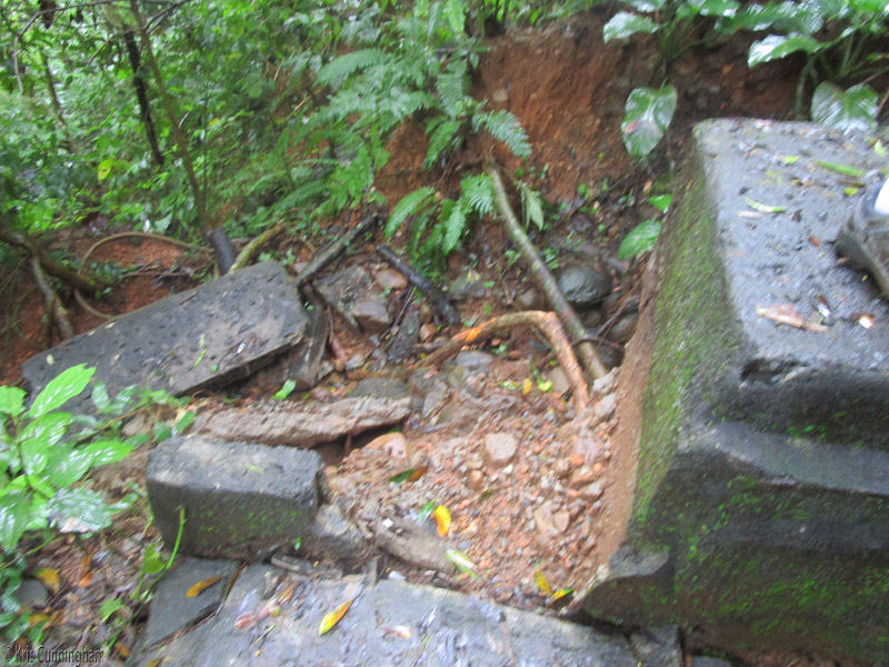 We noticed the ground was washing away under some of the steps, and now this step has fallen away entirely