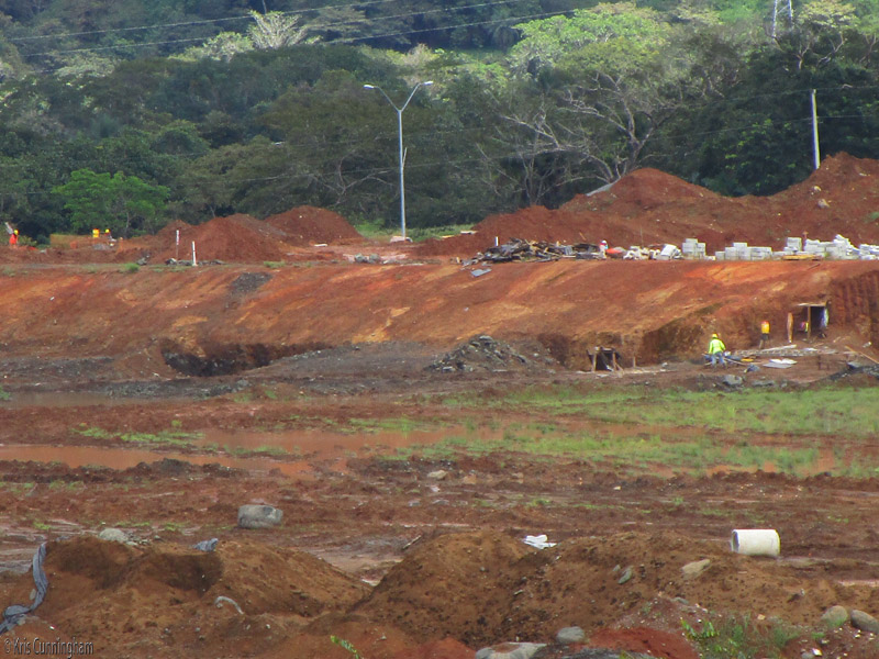 Those street lights are over Via Boquete. At first I thought the structures were doorways into the hillside, but they are just little shelters for the workers.
