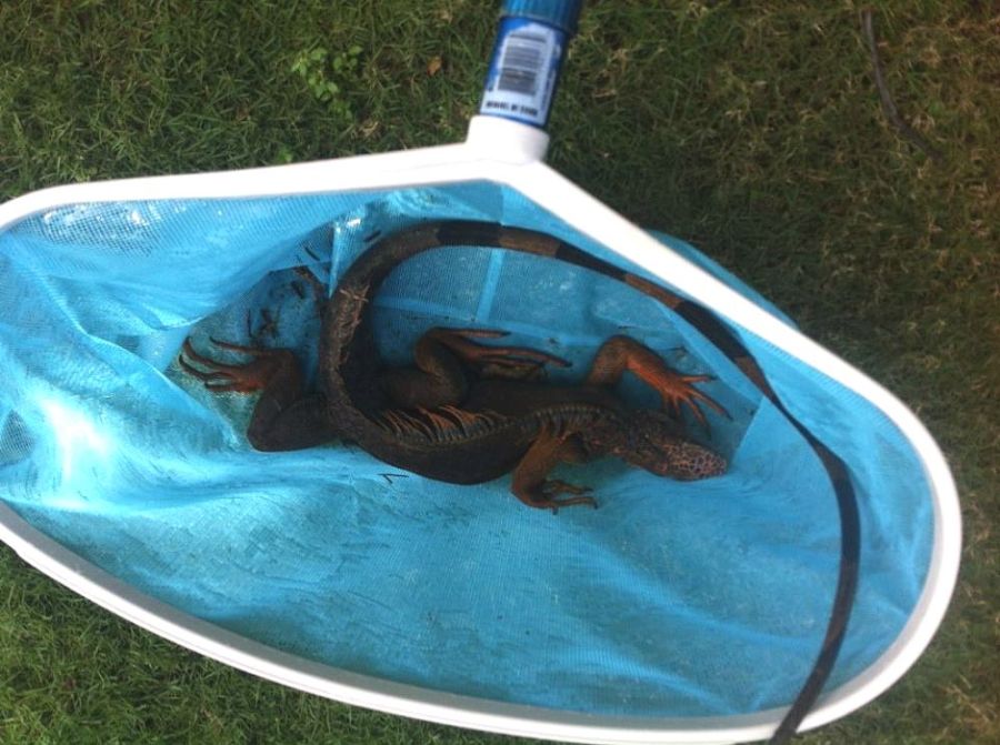 The dogs almost got this one. She was smart and dove in the pool though where they wouldn’t go.