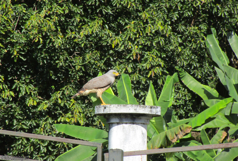 This hawk grabbed something out of the bushes and went up here to eat it.
