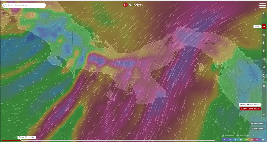 This is the wind map from WindyTV today, a few thousand feet up at mountain height.