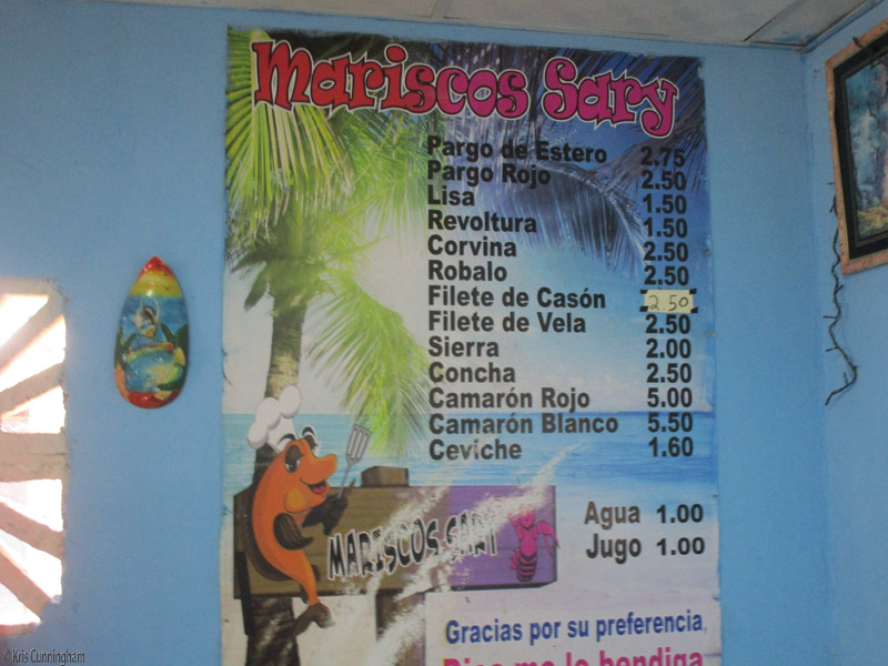 This is their price list (per pound) Red snapper, sea bass, mackerel, some others I’m not sure what they are called in English. Camaron is shrimp.