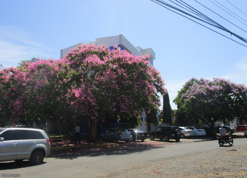 I found a pink flowering tree of the same type as the purple flowering trees behind Chiriqui Hospital