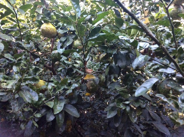 We had two trees but one died last year. We also didn’t have fruit last year because of the brush fire the year before which caused the trees to drop all their leaves. But, this year we have fruit again. Thank you tree!