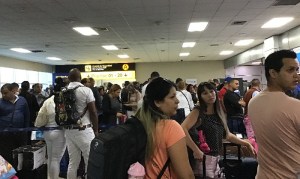 Now, go out to the lobby where you will find yourself facing a crowd of people looking for arriving passengers. You are on the ground floor, so look for the stairs and escalator that will take you upstairs to the check in area. Turn left up there, pass the lines of people at the Copa check ins and look for the sign that says “domestic flights”, almost to the end where there are signs for gates 1-20. Ask any employee “David?” (“Daveed”) if you are confused. The line should be reasonably short.
