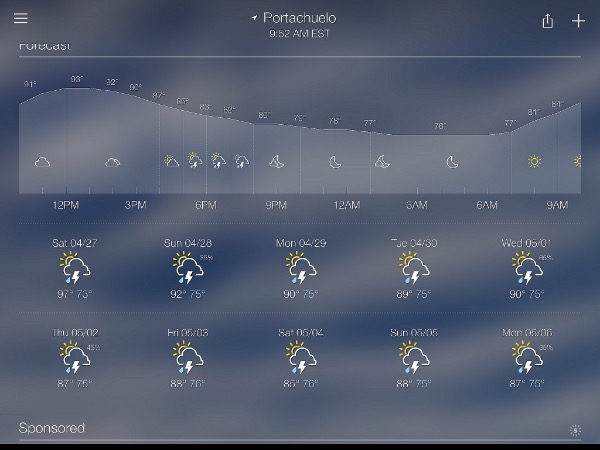Today’s weather. That chance of rain is 10% this evening, so I’m not counting on anything.