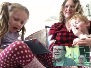 I got home in time for snack and reading circle time. My grandkids are home, so my daughter had this wonderful idea. We were in a video chat on one tablet, the other grandparents were on another, and we joined the circle while the kids read books and had their snacks. Then it ended with singing Zippity Do Da. It was wonderful to have this connection with my family!