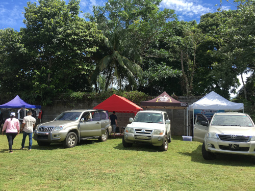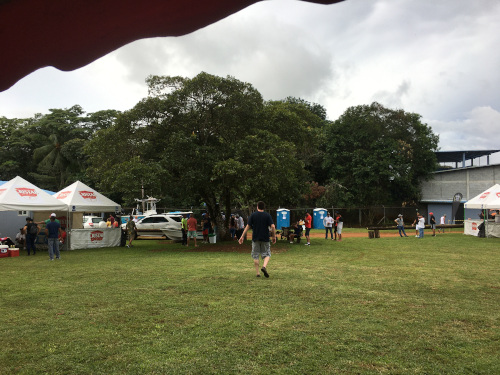 We were under the red tent and there were some vendors on either side of us. There were also people selling food and drinks on site. The crowd wasn’t big but the people were enthusiastic, and took a lot of photos, selfies, and videos. Many talked with us to say they appreciated the music, told us about some of their favorite songs and bands, and we made some new friends.