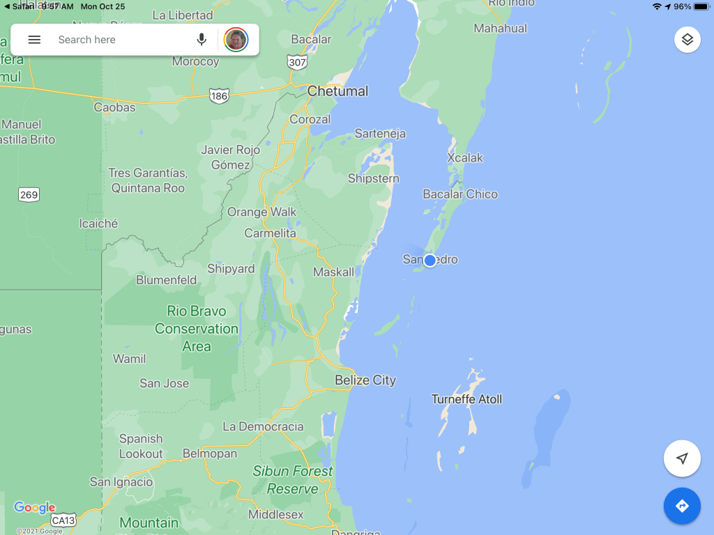 San Pedro is the blue dot. Right above us is the border of Mexico, between Bacalar Chico and Xcalak.