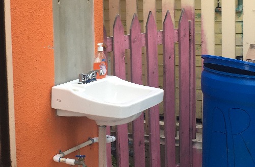 The first picture is waiting to clear immigration at the airport. The second is outside the airport with a few of the many Mennonite people who we learned live in Belize. The others are a couple of the hand washing sinks around town.