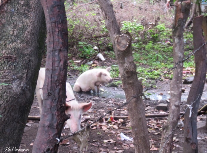 Pigs in mud! They had a couple cute ones but they didn’t know me so ran away if I came close