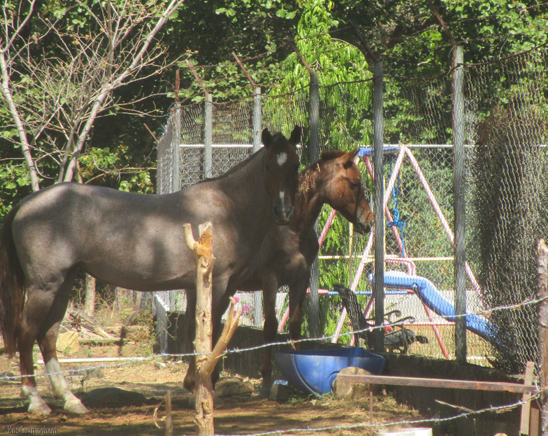 This mom and baby are just outside our neighborhood. The young one is getting as tall as mom.
