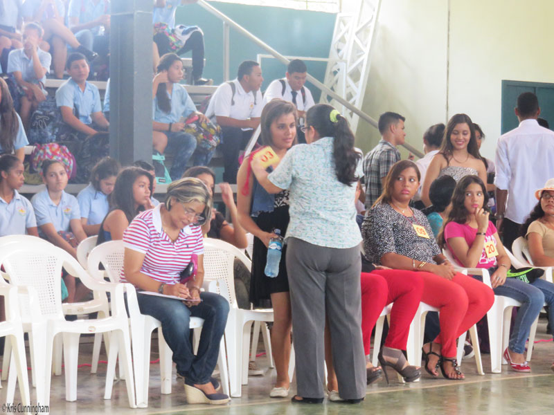Amarilis makes sure everyone has the correct numbers on so the judges don’t get confused.
