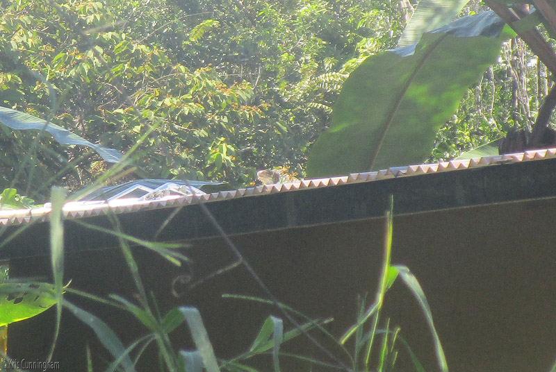 Nothing like an iguana on a metal roof to make you wonder what is stampeding across your house! He ducked down when he saw me but you can still see his head right in the middle of the picture