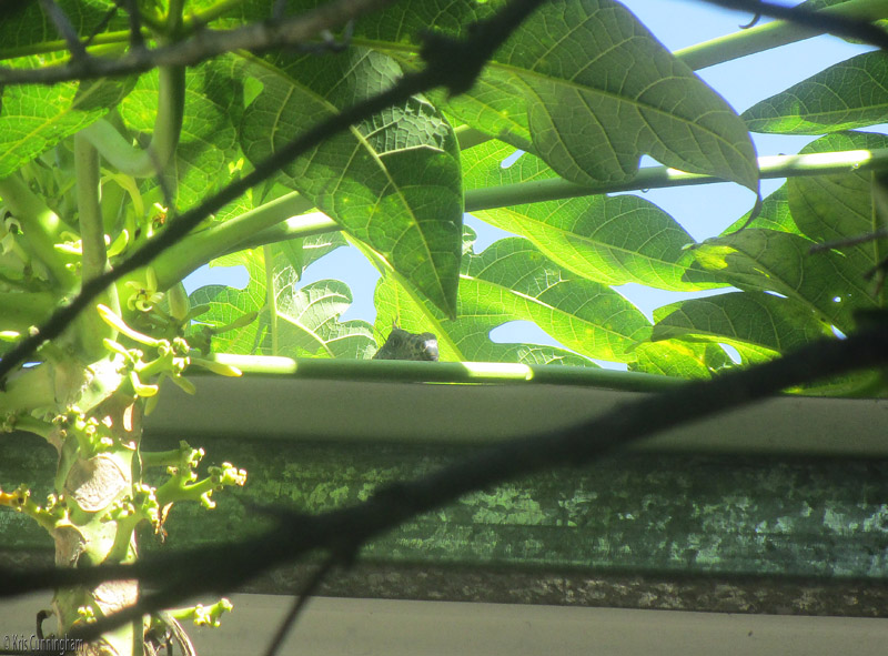 Then he went to the other side of the house and peeked at me from under the papaya tree.